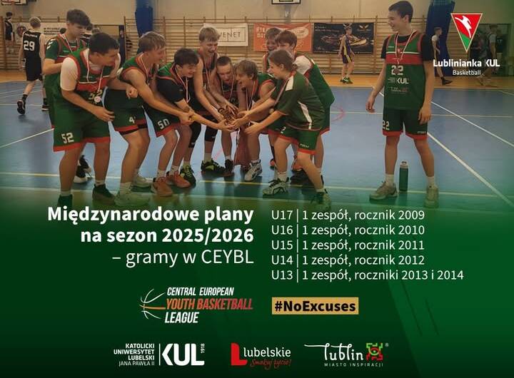 Aż 5 naszych zespołów (U13, U14, U15, U16, U17) zagra w międzynarodowej lidze CEYBL (Central European Youth Basketball League). Więcej szczegółów w najbliższych tygodniach. 😊