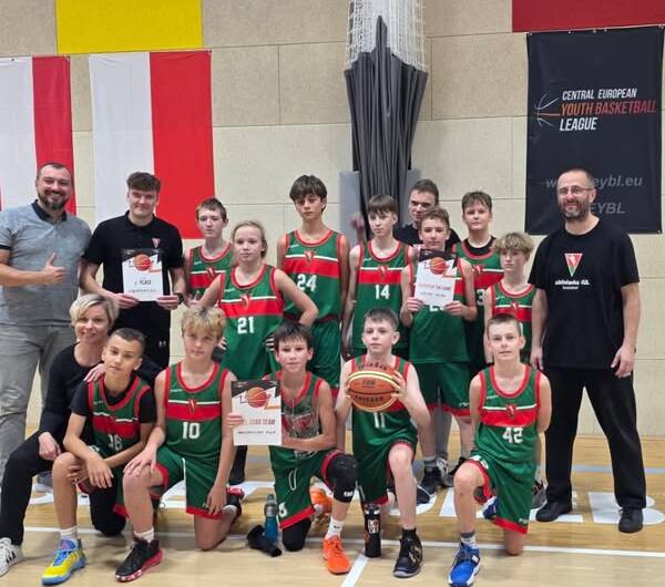 Od piątku do niedzieli graliśmy w czeskich Podiebradach pierwszy turniej w lidze międzynarodowej CEYBL. Zmierzyliśmy się z dużo silniejszymi i bardziej ogranymi zespołami z Polski, Czech oraz Austrii, tj. z Basket Podebrady, SKM Zastal Zielona Góra, PGE Giek Turów Zgorzelec, Sparta Praga oraz Vienna Timberwolves. Wracamy bez zwycięstwa, natomiast zdobyte doświadczenie oraz możliwość zmierzenia się z tak mocnymi drużynami jest na tym etapie rozwoju naszych chłopaków po prostu bezcenna. Bardzo też doceniamy wolę walki podopiecznych trenerów Jacka Lipskiego oraz Kacpra Kępy. Od pierwszej do ostatniej sekundy meczu „gryźli parkiet”, nawet pomimo tego że ostatnie spotkanie musieli – z powodu kontuzji i urazów– zagrać w zaledwie 7 osobowym składzie. 😊