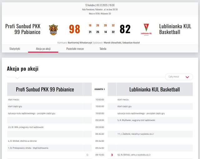 Przegrywamy z nimi trzeci mecz z rzędu, odkąd awansowali do II ligi. Dzisiaj ulegliśmy na wyjeździe 82:98. Punkty dla Lublinianki zdobywali: N. Biliński 24 (6 zbiórek), A. Myśliwiec 17 (6 zbiórek, 1 blok), W. Górzyński 11, M. Wiśniewski 10, B. Karolak 8 (5 asyst), J. Zabłocki 7 (8 zbiórek, 8 asyst), P. Glonek 3, O. Sędłak 2, A. Futrzyński, M. Kwiatkowski.
