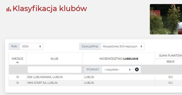 W zestawieniu za 2024 r. jesteśmy na I miejscu w woj. lubelskim w koszykówce chłopców, zarówno w 5×5, jak i 3×3 (tu wspólnie z MKS Start Lublin). W klasyfikacji ogólnopolskiej zajmujemy odpowiednio 48 i 18 miejsce. Gratulacje dla zawodników, trenerów oraz wspierających nas rodziców i partnerów!