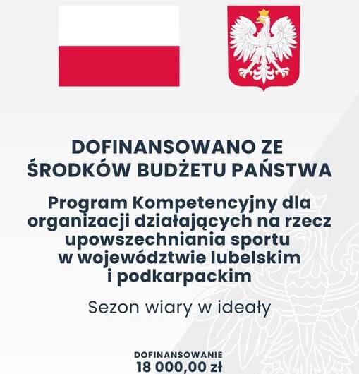 Miło nam poinformować, iż nasz projekt „Sezon wiary w ideały” został dofinansowany w ramach programu Ministerstwa Sportu i Turystyki pn. „Program Kompensacyjny dla organizacji działających na rzecz upowszechniania sportu w województwach lubelskim i podkarpackim”.