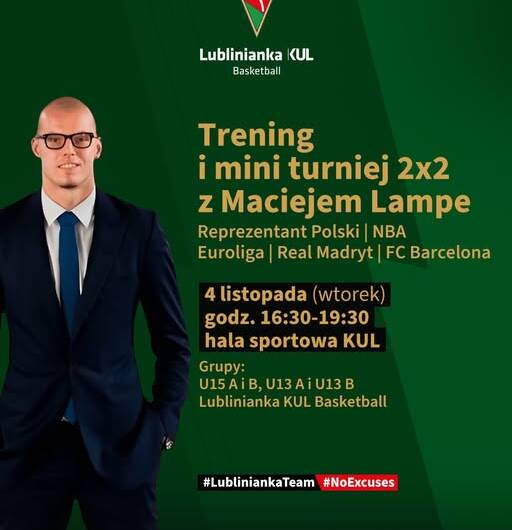 16:30-17:00 – rozmowa z Maciejem Lampe, Q&A (część otwarta dla wszystkich zawodników Lublinianki KUL Basketball)