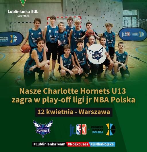 W najbliższą niedzielę nasze Charlotte Hornets jedzie do Warszawy na play-off. W meczu ćwierćfinałowym Konferencji Wschodniej zmierzymy się Akademią Młodych Dzików Warszawa. Następny mecz lub mecze zależą od wyniku ćwierćfinału. W tegorocznej edycji ligi gra zespół U13A trenerów Jacka Lipskiego oraz Kacpra Kępy.